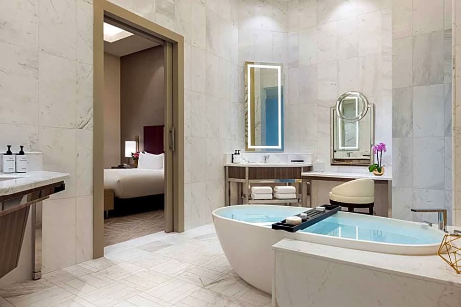 The spacious suite features air conditioning, a mini-bar, a tea and coffee maker, a safe deposit box, as well as a flat-screen TV. The unit has 1 bed.
